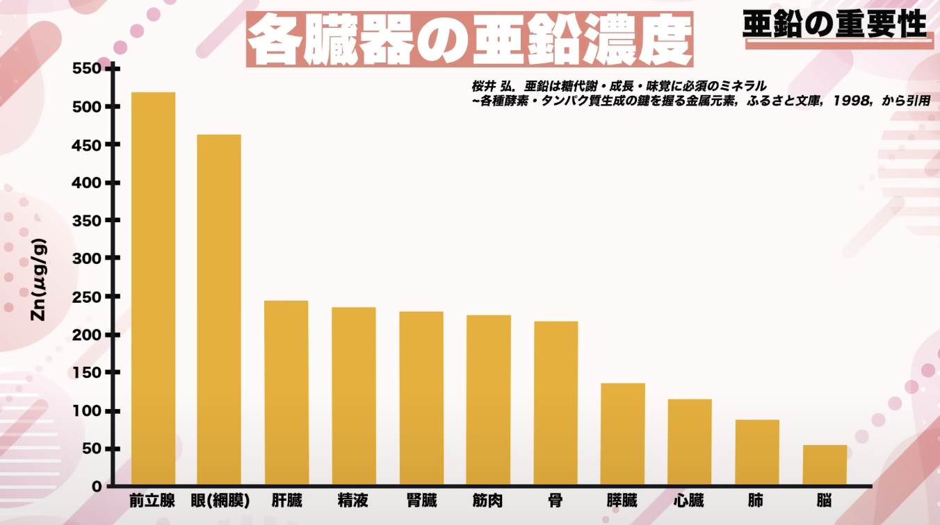 ━━亜鉛って、身体にとってどれくらい大事なものなのか今ひとつ腹落ちしてなかったんですが、必須ミネラルなんですね。