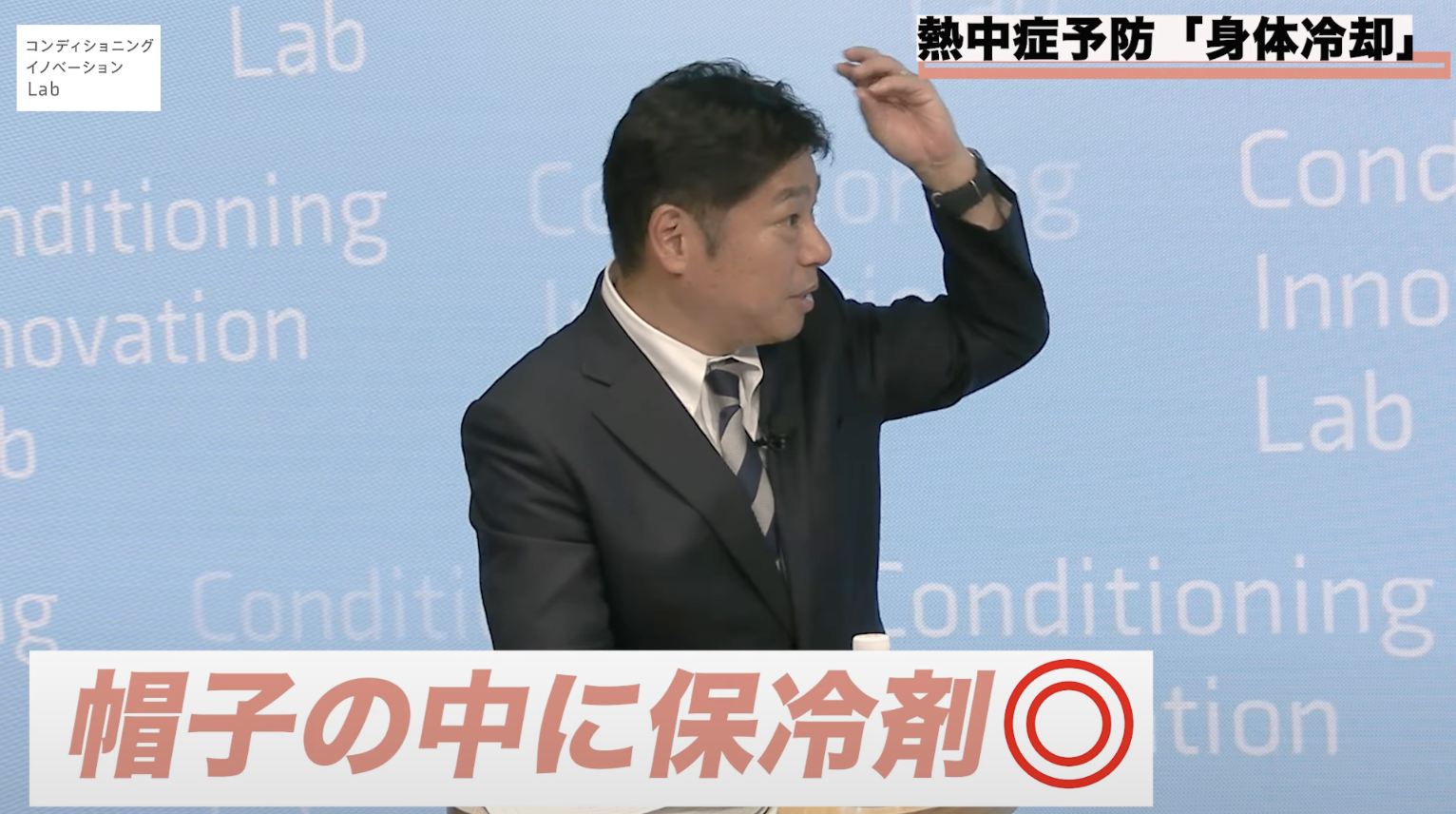 帽子の中に保冷剤を入れるのは正解です。マラソンや競歩の選手が、オリンピックやアジア大会などで同じことをやっています。