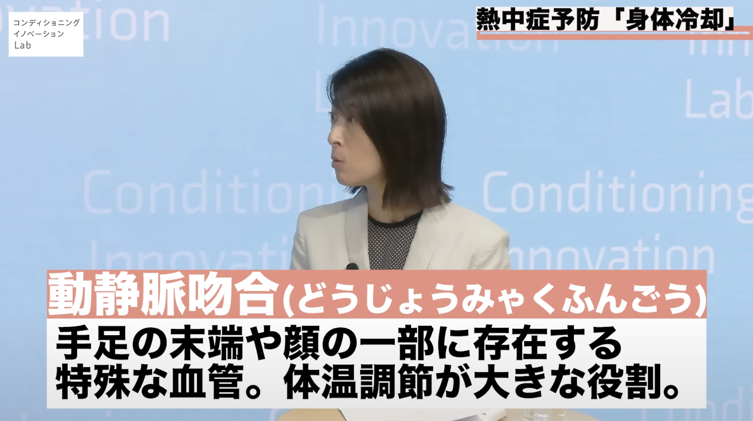 顔を冷やすのも正解ですね。体温が上がってきたときに動脈と静脈が開いて、手のひら・足の裏・頬から熱が出るんです。このような動脈と静脈の接合部分のことを、動静脈吻合(どうじょうみゃくふんごう)といいます。