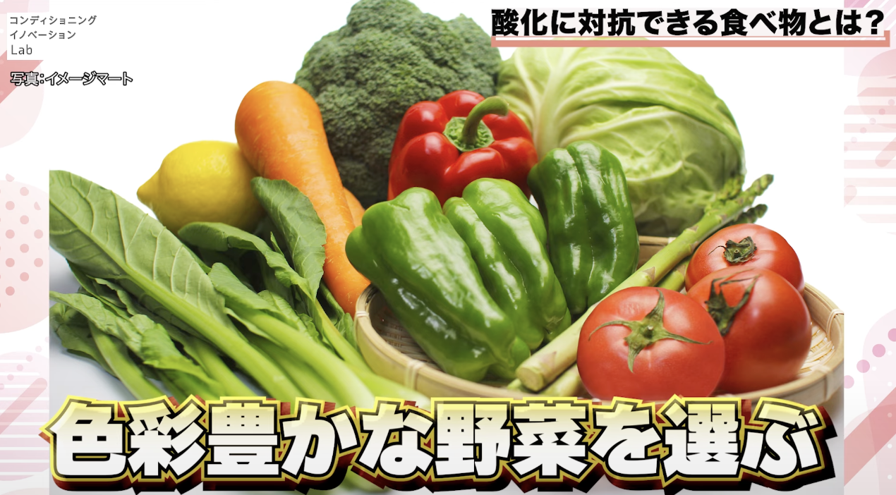 さきほど説明したように「アルコールの制限」も大切です。さらに「野菜などの抗酸化食材の摂取」ができているかも、体の酸化には関係してきます。