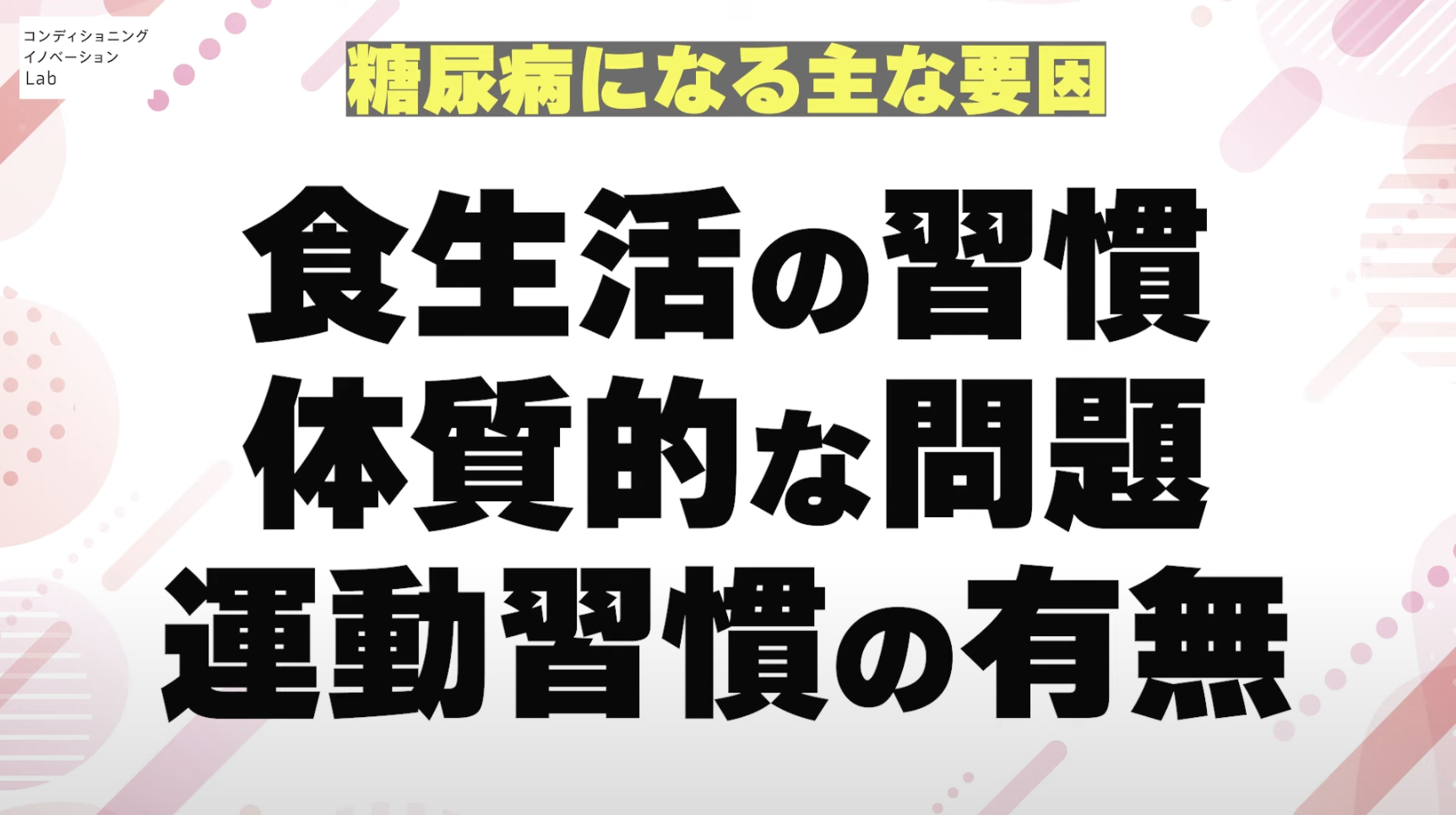 一つは食習慣ですね。あと、体質も大きいです。やはり糖尿病になりやすい体質の方はいらっしゃいます。