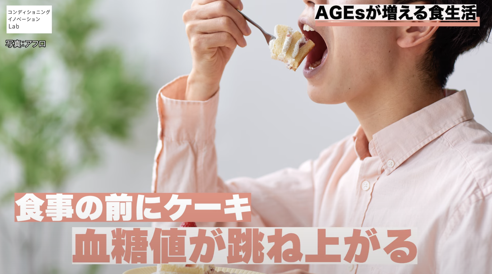 たとえば、ご飯の前にケーキを食べるといった血糖値を上げてしまう食生活の習慣があると、当然血糖値が跳ね上がります。そうなると内因性のAGEsが増えてしまいます。