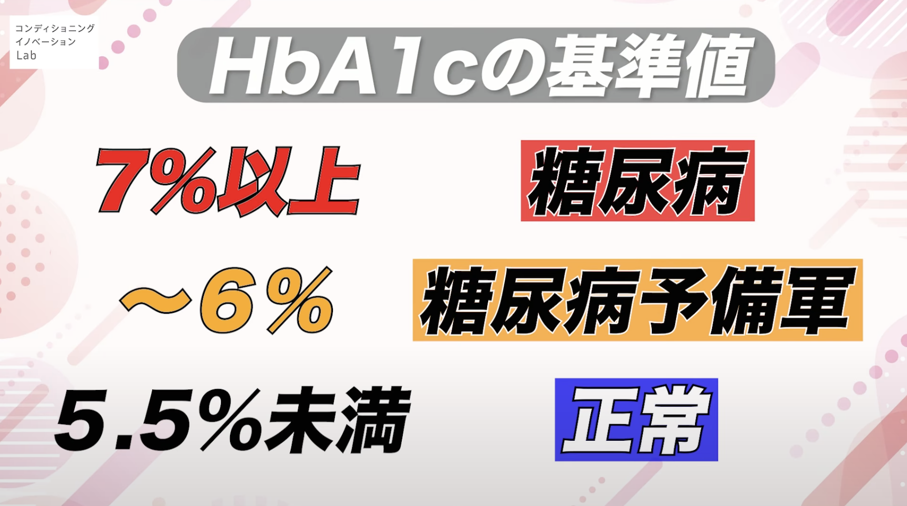 大まかな目安としては、7%以上あると本物の糖尿病が始まっていると考えてください。6〜7%だと糖尿病予備軍で、健康な方は5.5%未満に収まります。