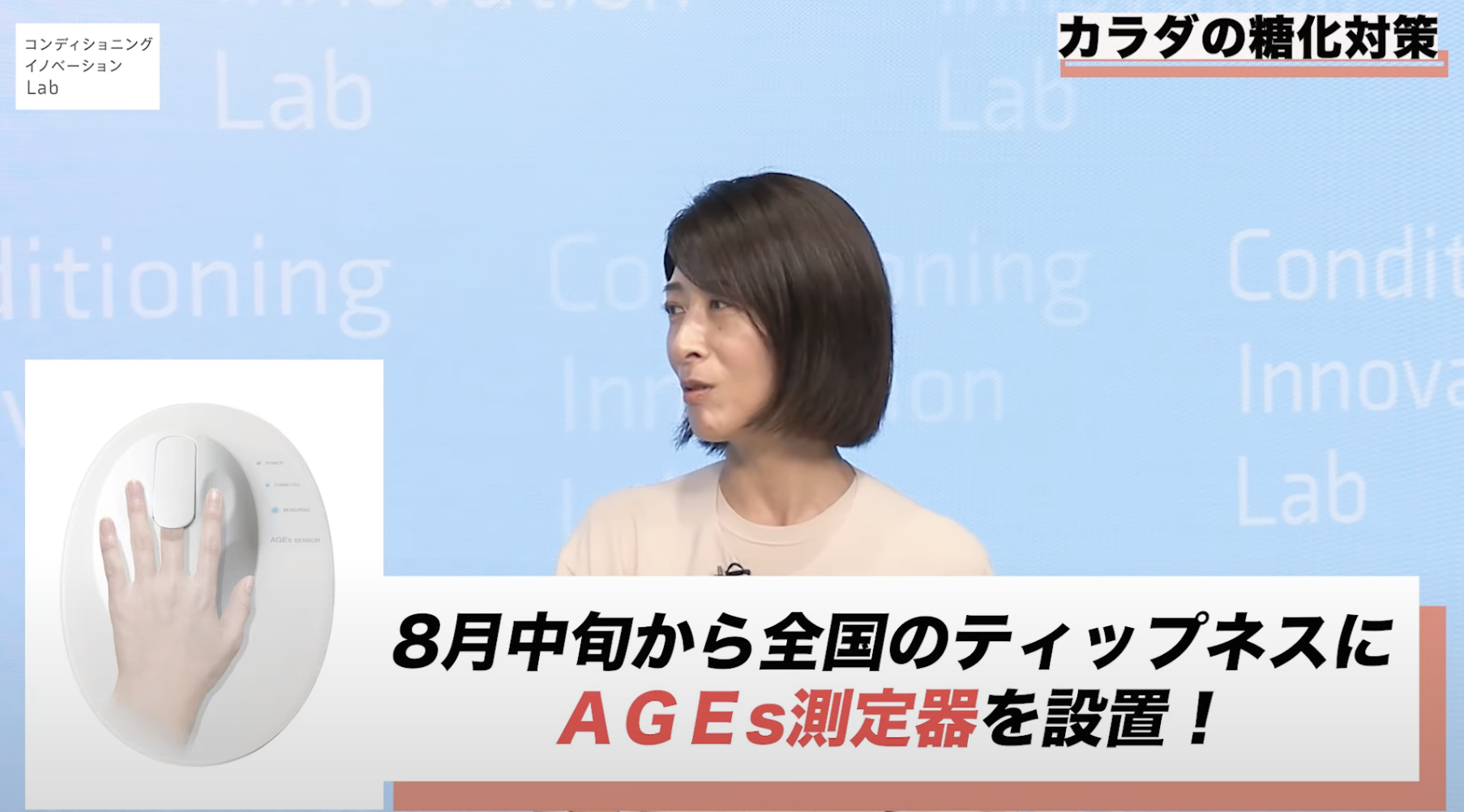 ━━指でAGEsの量を測れる機械が、8月中旬からフィットネスクラブ「ティップネス」に全国的に置かれているので、気になる方は調べてみてほしいですね。