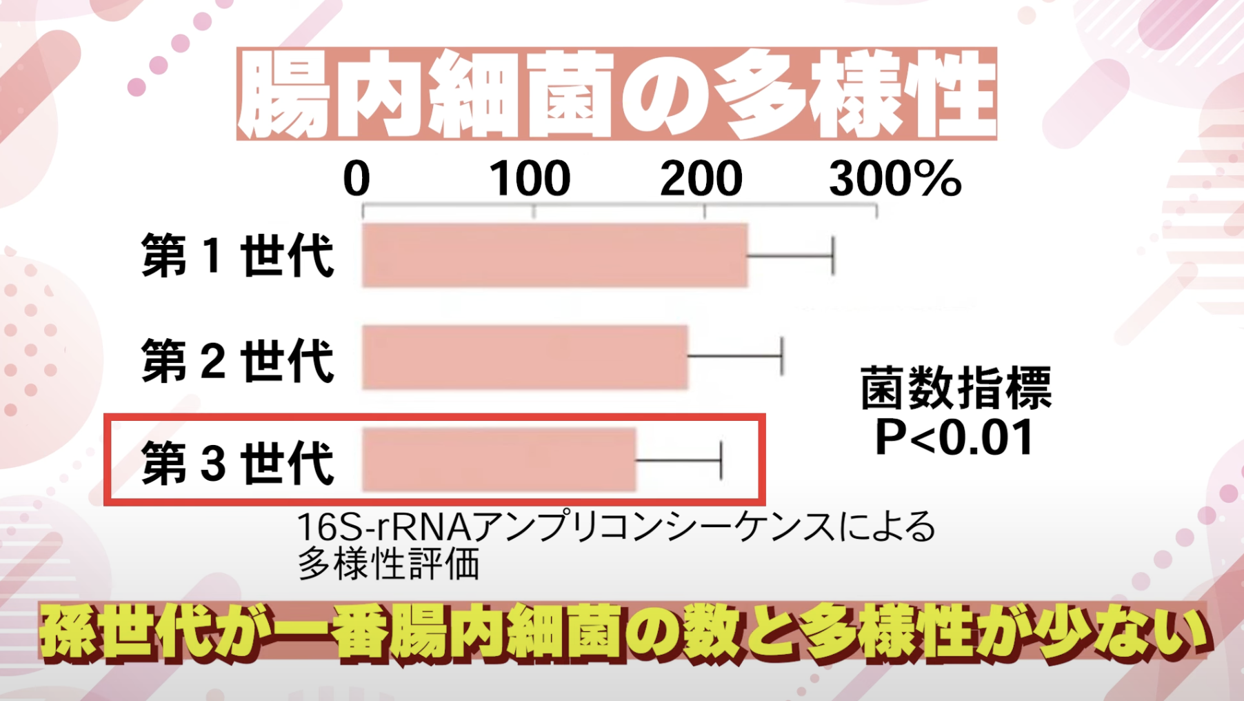 すると、お孫さんたちの腸内細菌が一番、数も多様性も少なかった。だから、そういう現代で私たちが腸活をどう維持できるか、今一生懸命考えています。