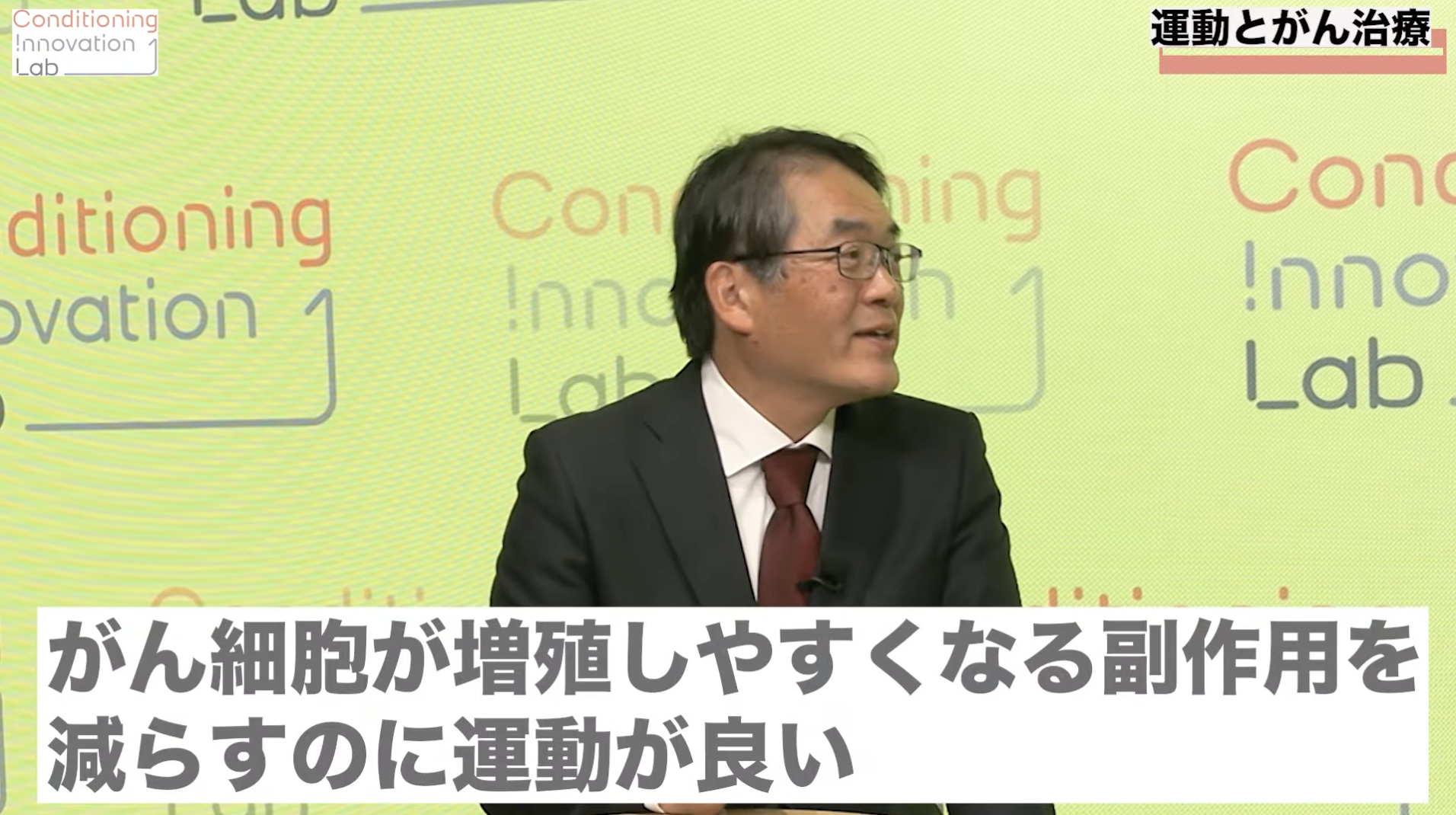 その結果、かえってがん細胞が増殖しやすくなってしまうことがあるので、治療の副作用を減らすために運動が良いとされています。また、運動するとがんの再発防止や予防にもつながることがわかってきています。
