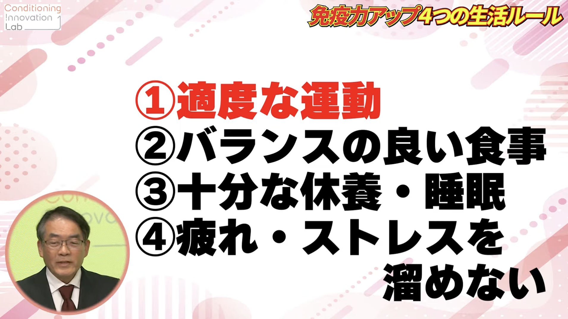 ━━先生、免疫アップの4つの生活ルールをあげていただけますか。