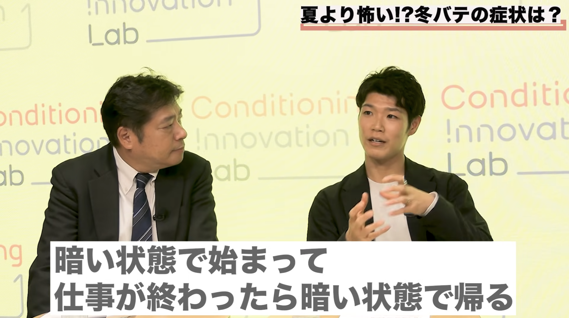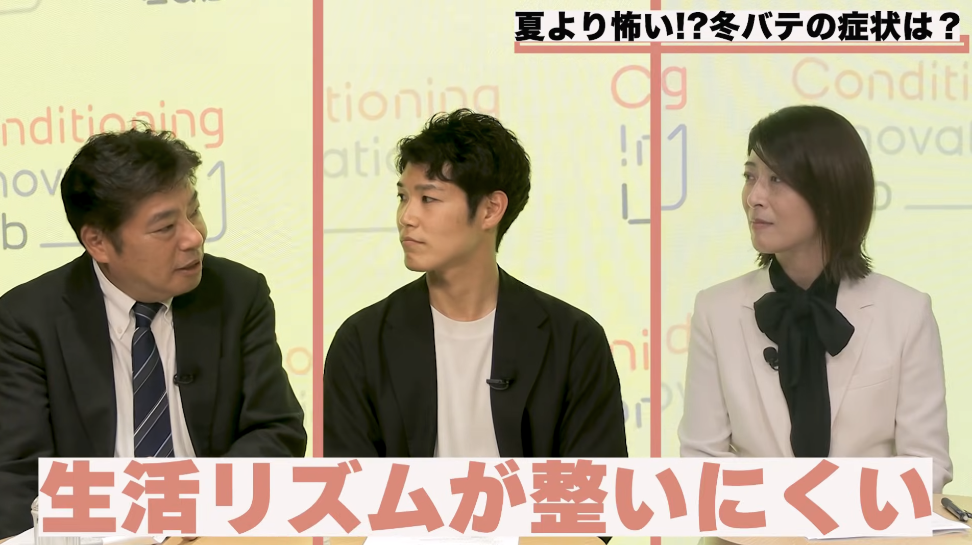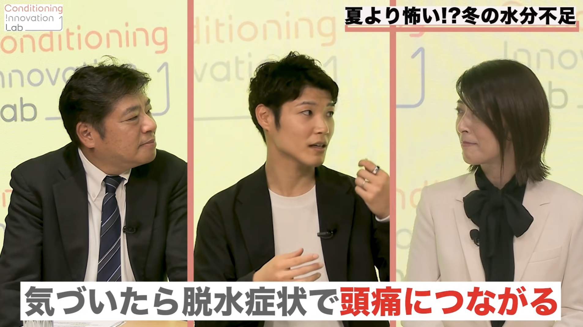 スポーツ界のコンディショニング研究の第一人者・杉田正明さんと、自身もアスリートである株式会社TENTIALのコンディショニング研究所所長・舟山健太さんとのコラボ企画。両名とも、冬の体調不良の原因として「隠れ脱水」の可能性を示唆し、警鐘を鳴らした。冬の体調不良はなぜ起こるのか、その背景にある隠れ脱水とは何なのか…。日本テレビホールディングス・古市幸子が迫った。